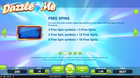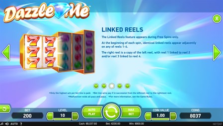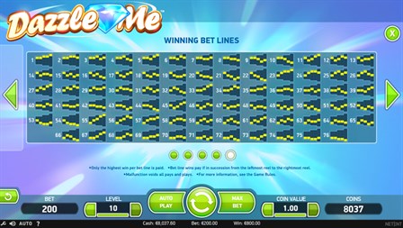 Ladies and gentleman, please get ready to be dazzled by glitzy new video slot Dazzle Me! This brilliant casino game provides an unforgettable experience with glittering gems appearing on the radiant reels! Dazzle Me is a video slot with 5 distinctive reels and a dazzling 76 bet lines. The game features Dazzling Wild Reels, Free Spins and LinkedReels.