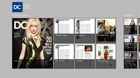 The DC magazine app offers a mini escape in your hands, showcasing the finest in fashion, local dining, culture, home design, and travel. With interactive page flipping, a zoom feature, bookmarking, searching and viewing your favorite articles allow an enhanced magazine experience right anywhere and anytime you choose to read.