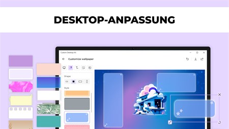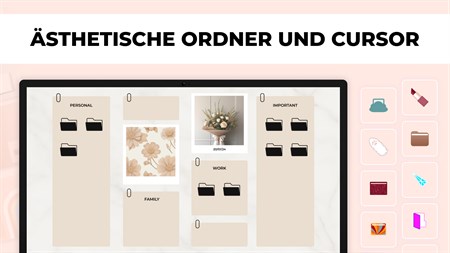 UM IHRE DESKTOP ANZUPASSEN, KÖNNEN SIE: - HINTERGRUNDBILD, ORDNERSYMBOLE und CURSOR-Effekte auswählen; - Hintergrundgröße ändern; - Ordnerform ändern; - Text und Schriftarten hinzufügen, Farbe und Größe bearbeiten; - mit KI GENERIERTE AUFKLEBER hinzufügen; - Ihre Bilder hinzufügen.