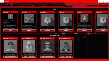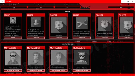 Kannst du einen Mordfall allein mit deinen Fähigkeiten als Detektiv lösen? Zu den verfügbaren Elementen, die du analysieren musst, gehören: Hinweise, Zeugen, Verdächtige, versteckte Objekte, Alibis und Mordwaffen.
