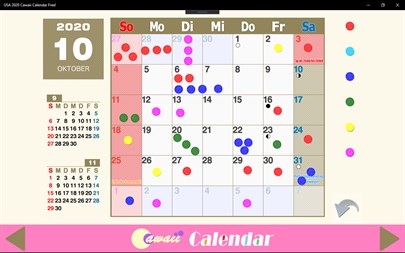 "Cawaii Kalender" fordert Sie auf Ihre Aufgaben zu erfüllen. Schöne bunte Briefmarken visualisieren Sie Ihre Leistungen. "Cawaii Kalender" ist eine einfache und schön aussehende Monatskalender. Sie können das aktuelle Datum und Ihre Veranstaltungen auf einem Blick überprüfen. Genießen Sie die Eingabe Ihrer Termine, Ereignisse oder Leistungen durch einfaches Ziehen Farbmarken auf dem Kalender. Die Verwendung von Farbmarken ist alles bis zu Ihnen! Es ist super intuitiv. Keine Tastatureingaben. Nichts zu lernen.