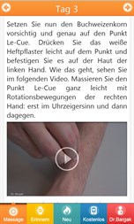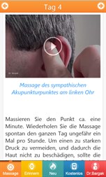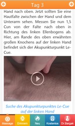 Jeden Tag präsentiert Ihnen die App einen Akupressurpunkt, den Sie ganz leicht mittels eines einfachen Videoclips finden können. Die entsprechende Massage ist ebenfalls mit einem Videoclip erklärt.