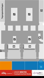 Orientieren Sie sich mit „ Karten“ einfach und schnell vor Ort und lassen Sie sich anzeigen, wo welcher Raum oder Ausstellungsstand zu finden ist. Ein Klick auf die einzelnen Räume und Stände genügt, und sie finden alle Informationen zum dort stattfindenden Programm.