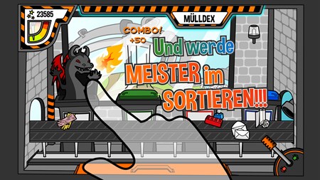 STELLE DICH DER HERAUSFORDERUNG! Spiele im "Endlosmodus" und versuche den Highscore zu brechen, während mehr und mehr Müll das Fließband füllt!