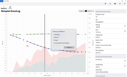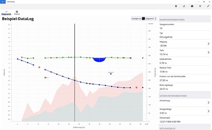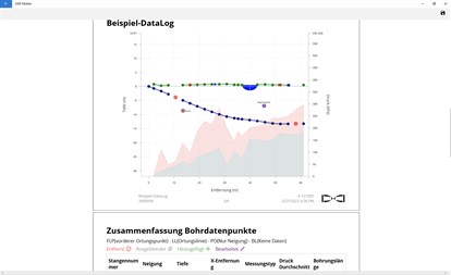 Die Verwendung von LWD zur Dokumentation Ihrer Bohrung ist ganz einfach. Alle Daten, die zur Erstellung eines Diagramms des Bohrprofils erforderlich sind, einschließlich ausführlicher Daten für jede Stange, werden mit einem einzigen Klick auf dem Ortungsgerät gespeichert.