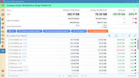 With Disk Space Manager, you will be able to see which folders have increased in size and get a list of all the new files, all the files that have increased in size (as well as files deleted, and decreased)
