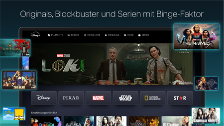 Hol dir mit Disney+ unbegrenzte Unterhaltung nach Hause und streame aktuelle Neuerscheinungen von Disney, Pixar, Marvel, Star Wars, National Geographic und weiteren. Dich erwarten erstklassige Originals wie The Mandalorian, Loki und The Bear: King of the Kitchen, Blockbuster wie Encanto, Avatar und Guardians of the Galaxy sowie Serien zum Binge-Watching wie Die Simpsons, Criminal Minds und Grey's Anatomy. Mit Disney+ genießt du folgende Vorteile: • Jede Woche brandneue Originals, Blockbuster und unvergessliche Serien • Personalisierte Empfehlungen basierend auf deinen Favoriten • Zuverlässige Kindersicherung für familienfreundliches Streamen • Ohne versteckte Kosten, Kündigung jederzeit möglich* Hilfe zu Disney+ erhältst du unter: http://help.disneyplus.com. Unseren Nutzungsvertrag und andere Richtlinien findest du unter: https://disneyplus.com/legal/subscriber-agreement * Zum Ende des Abrechnungszeitraums wirksam. Die Inhalte auf Disney+ können je nach Land variieren. Einige der oben genannten Titel sind in deinem Land ggf. nicht verfügbar.