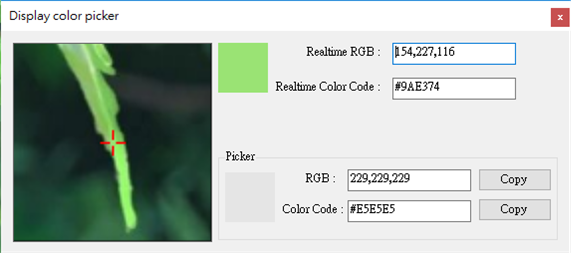 Use the cursor to select the color anywhere on the display and copy it to the clipboard.