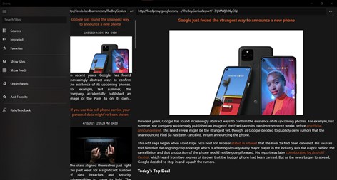 You can save your favorite sites to the Favorite category and export your favorites as an XML file. You can also import your own custom OPML files from another website or App and bring them over into Diurna. You can also easily customize the appearance of the Feeds and pin or unpin the panels to make the App work for you just the way you like.