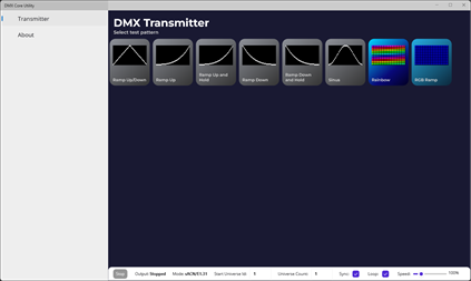 Powerful utility to transmit DMX/DMX512 patterns using sACN/E1.31 on your local network (multicast). Great for testing DMX and pixel controllers like the DMXking LeDMX2/LeDMX4, or any device that can receive multicast sACN data. Options to select universe id, number of universes to mirror the output to (up to 100 universes) and if sync packets should be sent.