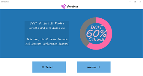 Ergebnisse bitte nicht zu ernst nehmen, die App ist nur zum Spaß gedacht.