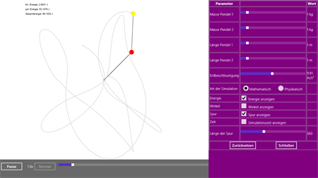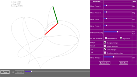 Dies ist eine realistische Simulation eines Doppelpendels.