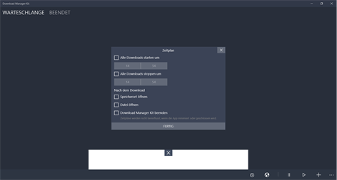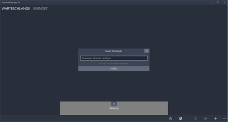 Download Manager Kit ist ein leichtgewichtiger HTTP/HTTPS-Protokoll Download-Manager, der auf der Windows Universal Platform lft. Das hei, dass du deine Downloads auf all deinen Windows 10-Geren verwalten kannst, sei es dein Handy, PC oder sogar die XBox!s Windows 10 PC, Tablet, Mobile and Xbox. Auf der einfachen Benutzeroberflhe kannst du deine Downloads und die Warteschlange ganz einfach managen, ohne dir die nervige Tour er den Browser antuen zu msen.