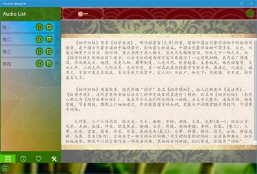 《幼学琼林》is written in parallel style, the whole book is written in dual sentences, easy to read aloud, easy to remember. This application contains a set of Chinese encyclopedia, each provided human read audio, comment and pinyin, also translation, can be used for children education.