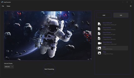 Easy Presenter simplifies secondary screen presentations with its user-friendly Windows desktop application. It allows presenters to manage and showcase a variety of content types—including images, videos, web pages, and office documents—on a secondary display, while also viewing them within the app interface. This dual-display functionality provides a convenient preview on your main screen, ensuring you maintain control and confidence during your presentation. Just queue your content with the intuitive drag-and-drop interface and use the 'Start Presenting' feature to broadcast seamlessly to a TV or projector. Ideal for professionals and educators, Easy Presenter delivers efficiency and precision for impactful presentations.