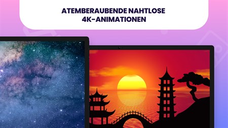 Funktionen: - nahtlos geloopte animierte Hintergrundbilder - große Auswahl an Bildschirmauflösungen - Kompatibilität mit Sperrbildschirmen - KI-betriebene Hintergrundbilder