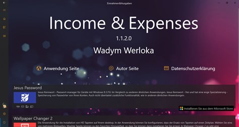 Einfach zu verwendender Budgetplaner. Ermöglicht Ihnen die Kostenkontrolle, den Überblick über die Einnahmen und das Speichern der Kaufhistorie in Form von Ausgaben. Es ist auch möglich, verschiedene Ausgaben oder Einnahmen mit ähnlichen Ausgaben oder Einnahmen für verschiedene Zeiträume zu vergleichen. Ermöglicht es Ihnen, die Geschichte länger als ein Jahr aufzubewahren. Zeigt den aktuellen Stand des Gleichgewichts an. Diese Anwendung speichert ihre Daten in Ihrer OneDrive-Cloud. Auf diese Weise können Sie die Anwendung auf verschiedenen Geräten unter Windows verwenden und Daten zwischen diesen synchronisieren.