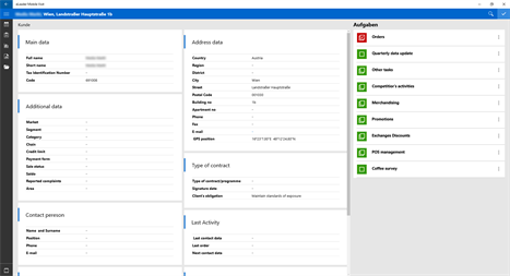 Schlüsselfunktionalität der Anwendung, die für eine bessere und effizientere Arbeit sorgen, sind zum Beispiel: unbegrenzter mobiler Zugriff auf die Unternehmensdatenbank, die Planung und das Management der Besuche, Unterstützung des Verkaufs (Budgets, Pläne, Berichte), Berichte über die Tätigkeit von der Konkurrenz und andere. Alle Prozesse können schnell auf die aktuellen Bedürfnisse der Kunden angepasst werden.