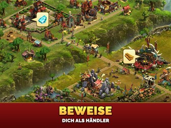 HANDELE MIT FREUNDEN Tausche Waren und Ressourcen mit befreundeten Spielern und Händlern auf dem Marktplatz.