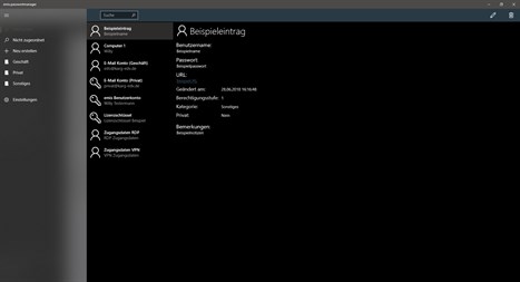 Verwalten Sie Ihre Passwörter jetzt einfacher mit emis.passwortmanager im Windows-10-Stil! Mit nur wenigen Klicks haben Sie Ihre Passwörter und Logins immer im Blick. Egal, ob auf dem Windows-10-PC oder Smartphone, diese App ist universell und funktioniert ebenfalls auf den neuesten Windows Phones! (Voraussetzung: Windows-10-PC/Phone mit mind. Creators Update)