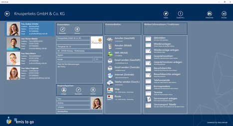 emis to go ist eine Erweiterung zu unserer CRM- und ERP-Komplettlösung emis für Tablets und PCs mit Windows 10 oder 11. Mit emis to go können Sie so auch im Außendienst auf Ihre aktuellen Daten Ihres zentralen CRM/ERP-Systems zugreifen – der Zugriff auf das zentrale CRM/ERP-System in Ihrer Firma erfolgt in Echtzeit, wodurch eine zeitaufwändige Datensynchronisation entfällt.