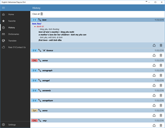 This application is a dictionary included four database: English-Vietnamese, Vietnamese-English, OAL and synonym. The main function is to provide an easy to use tool for finding word meaning and usage.