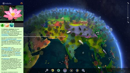 Entdecken Sie die Tierwelt! Während Sie den Globus drehen, sehen Sie die enorme Vielfalt der Tiere, Vögel und Meereslebewesen. Zwischen Bäumen und Büschen, faszinierenden Blumen und farbenfrohen Korallenriffen entdecken Sie Lebewesen, von denen Sie bis heute nie gedacht hätten, dass es sie gibt.