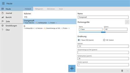 FUNKTIONEN: 1. Ein einfaches und leistungsfähiges Design: Die App öffnet sich in Ihrer Eingabemaske direkt mit der letzten Mahlzeit, denn diese Funktion, werden Sie am häufigsten verwenden. Die weitere Gestaltung macht Ihnen das intuitive Hinzufügen von Einträgen so einfach wie möglich. 2. „Ein Klick“ Eintrag mit persönlichen Empfehlungen: Die am häufigsten verwendeten Nahrungsmittel können direkt ausgewählt werden. Ab dem zweiten Tag werden Ihnen Ihre kürzlich verspeisten Lebensmittel vorgeschlagen, weil Sie vielleicht häufig das gleiche essen. 3. Eine Anmeldung ist nicht erforderlich. Es sind keine persönlichen Daten oder Kontaktinformationen erforderlich. 4. Tausende von Lebensmitteln befinden sich bereits in der Datenbank: Die meisten Lebensmittel verfügen über genaue Informationen, wie z. B. Portionsgrößen, Kalorien, Kohlenhydrate, Protein und Fett. 5. Volle Offline-Unterstützung: Sie müssen keine Verbindung zum Internet herstellen. 6. Präzise Eingaben sind ebenfalls einfach: Sie können die exakte Menge präzise mit einem Schieberegler eingeben. 7. Tägliche Berichte: Mit der Benutzung des Menüs können Sie direkt das Tagebuch öffnen, welches Ihnen die Zusammenfassung des Tages anzeigt. Hier wechseln Sie durch das Drücken auf das kleine Dreieck zwischen Kalorien, Eiweiß und Kohlenhydraten. 8. Verfolgen Sie Ihre Ziele: Nach der Eingabe Ihrer persönlichen Ziele können Sie den Wochenbericht nutzen, um Ihre Entwicklung zu sehen.