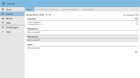 Diese App hilft Ihnen, Ihre Ernährung zu kontrollieren und sich gesünder zu ernähren, indem sie Ihnen den Überblick darüber liefert, was Sie gegessen haben. Das Design ist so optimiert, dass ein Eintrag so schnell wie möglich, mit nur einem Klick gemacht werden kann und schon unterbreitet Ihnen die App alternative Essenvorschläge. Die installierte Datenbank verfügt bereits über Tausende von Lebensmitteln, und falls eines nicht bekannt sein sollte, fügen Sie es einfach hinzu.