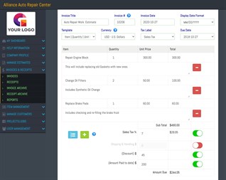 Features: - Build Estimates, Invoices & Receipts in minutes - Custom Branding - Use your company logo. - Intuitive and Easy to use Builder that let's you save time by building professional Estimates & Invoices in minutes. - Includes a Virtual Signature Pad to allow your customers e-sign estimates on the spot or remotely via a password protected link. This will help speed up estimate approvals and allow you to win more jobs. - Get automatic notifications when your estimates have been signed. - Ability to use custom fields to add custom labels on your documents - Create a Menu of all your Service items and set rates for each and easily apply them when creating quotes to save time. - Convert Estimates to Invoices & Invoices to Receipts in a click. - Duplicate Estimates and Invoices - Instantly Print, Export or Email in PDF format. - Share your Estimates, Invoices & Receipts via Email & SMS Text. - Customizable templates with unlimited theme colors - Get Paid Faster - Collect invoice payments via Credit Card & Paypal. Easily add a Paypal Pay Now button to your Invoices to allow your customers make instant payments. - Add Tax, Discounts, Shipping & handling & Amounts already paid info to your Invoices - Multi-Currency Support - Add attachments (Images and Files) to your estimates and invoices - Customer & Job management modules. - Generate Reports for a given date range - Archive your Estimates, Invoices & Receipts for future reference - Track year to year sales from the Dashboard - Easily Record payments received for each Estimate or Invoice. -Contains optional automotive fields for (Year, Make, Model, Odometer, License Plate, Vin)