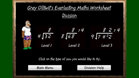 Free maths educational program. Practise addition, subtraction, multiplication and division sums with the Everlasting Maths Worksheets. Choose from 3 levels of difficulty from single digit sums to three figure problems. Each sum is randomly produced one at a time on a blackboard style interface. Audio and visual encouragement let's you know when you are right and when you need to try again. Includes the ability to carry 1 when the answer to a column of figures is more than 9.