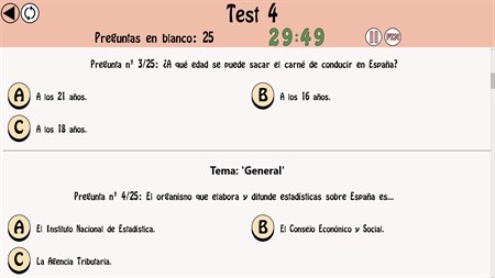 - Las 300 preguntas OFICIALES en 12 test. - Preguntas actualizadas al temario 2023. - Simulación de examen con preguntas aleatorias. - Estadísticas. - Dos modos de realizar un mismo test (modo de respuesta instantánea o modo examen). - Posibilidad de volver a contestar las preguntas falladas.