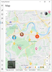 Family Monitor works with Google Maps shared locations. Alerts are defined that trigger when a family member becomes closer to or further from a location or another family member. For example, an alert can be created that is triggered if your child moves further than 100 metres from your location. Family Monitor only needs to be installed on the device of the person doing the monitoring. Nothing needs to be installed on the devices of those being monitored. However, those being monitored must enable their location to be shared through Google Maps. (The people being monitored must proactively accept the monitoring and are regularly reminded by Google that their locations are being shared.)
