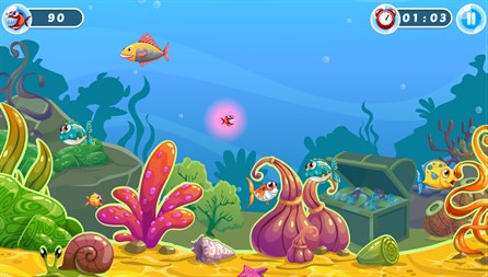 As a tiny fish, your goal is simple: eat smaller fish to grow bigger while evading larger predators. With each bite, you'll increase in size and earn points. But beware, the ocean is full of dangers! Stay alert and agile to survive and climb to the top of the food chain. Can you outswim the competition and become the biggest fish in the sea?"