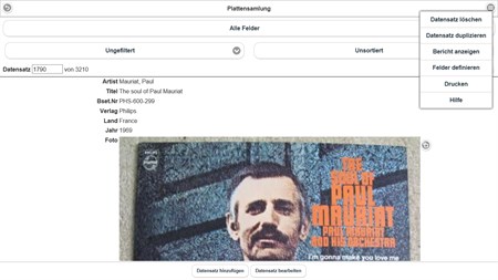 Datensätze in der Tabelle und Formularansichten gezeigt können als CSV-Datei exportiert werden, für die Integration mit anderen Desktop-Datenbank oder Tabellenkalkulationsprogramme. Nur Daten aus den Feldern, die in aktiven Ansicht enthalten sind, werden exportiert. Daten in Medienfelder sind in separaten Dateien begleiten die Textdaten in CSV-Datei enthalten. Die Anwendung enthält Meta-Informationen in einer CSV-Datei, die vollen Zyklus export / synchronisiert Reimport ermöglicht. Dies erlaubt Ändern von Datensätzen mit externen Anwendungen wie Datenbank- oder Tabellenkalkulationsprogramme auf dem Desktop-Computer.
