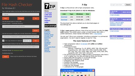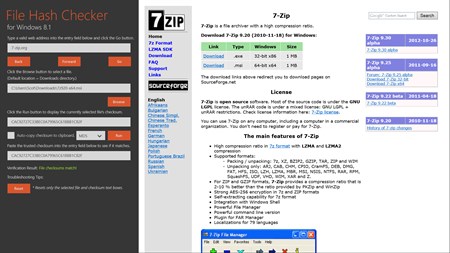 File Hash Checker allows you to calculate file checksums with Md5, Sha-1, Sha-256, Sha-384, and Sha-512 hashing algorithms. It then allows you to compare the generated checksum against a previously validated checksum to verify that the two checksums match. It does this by integrating a WebView control with a corresponding web address input box, so that you may navigate to, compare, and validate files all from a single app instance.