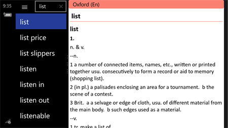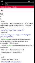 FlowDict is a Windows Phone shell for Startict dictionaries. It allows you to download and use multiple number of dictionaries from/to multiple languages, e.g. English, Spanish, Chinese, Russian, German, French, etc.
