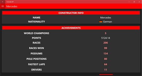 Every element on the application has a Wikipedia report related for that users who want to read the whole history about a driver, a race or even a circuit.