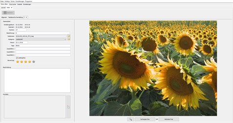 Ein in das Programm ergänzendes Bild kann einer Kategorie z.B. „Landschaft“, „ Porträt“ usw. zugeordnet werden. Man kann auch eine eigene Beschreibung hinzufügen, was ermöglicht, dass wichtige Details nicht vergessen werden. Ein Bild kann bewertet oder als ein Lieblingsbild gekennzeichnet werden.