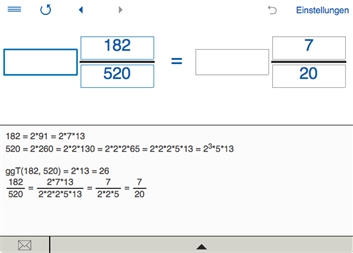 ► BRÜCHE KÜRZEN - Rechner zum Kürzen von Brüchen. - Der vollständige Rechenweg wird angezeigt.
