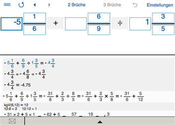 ► BRUCHRECHNER Berechnen Sie hier schnell und einfach den Bruchrechner. - Rechner für Brüche mit Rechenweg. - Rechnen mit zwei und drei Brüchen. Um drei Brüchen zu berechnen, sollten Sie die Querformat auswählen. - Addition, Subtraktion, Multiplikation, Division von Brüchen, gemischte Zahlen und ganze Zahlen. - Runden auf die nächste 1/2, 1/4, 1/8, 1/16, 1/32, 1/64, 1/128, 1/256.