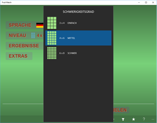 Haupteigenschaften: - Mehrere Ebenen und Optionen zur Auswahl - Unterstützt 3 Schwierigkeitsstufen (leicht, mittel, schwer) - Mehrere Sprachen (7 Sprachen) zur Auswahl (Englisch, Spanisch, Französisch, Deutsch, Italienisch, Portugiesisch und Russisch - mit mehr zu kommen) - Schnell lernen und auswendig lernen, wie man sagt Apfel, Aprikose, Avocado, Banane, Brombeere, Blaubeere, Melone, Kirsche, Kokosnuss, Traube, grüne Birne, Kiwi, Zitrone, Limette, Mango, Passionsfrucht, Melone, Orange, Papaya, Birne, Ananas, Drachenfrucht, Pflaume, Granatapfel, Erdbeere, Wassermelone in Englisch, Spanisch, Französisch, Deutsch, Italienisch, Portugiesisch und Russisch - Text-To-Speech-Technologien bieten eine einfache und effektive Möglichkeit, Fremdwörter und -laute zu lernen. - Behält die höchsten lokalen Punktzahlen für alle Levels, Modi und Sprachen bei - Ein einzigartiges Spiel um schnell Fremdsprachen zu lernen - Geeignet für Kinder, Kinder im Vorschulalter und Erwachsene - Ideal für Kindergarten- und Vorschulprogramme - Hilft Kindern Alphabete und Fremdwörter auswendig zu lernen - Kinder lieben es! - Bestes Memory-Spiel mit Sounds und Aussprache - Lerne Englisch, Spanisch, Französisch, Deutsch, Italienisch, Portugiesisch und Russisch - Es ist ein kostenloses Spiel. - Eines der besten kostenlosen passenden Memory-Spiele
