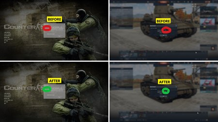 Screenshot #5. Counter-Strike: Global Offensive - 105.1 FPS before, 116.5 FPS after. Total 11% of FPS boosting for the CS GO. War Thunder - 57.9 FPS before, 72.6 FPS after. Total 25% of FPS boosting for the war thunder.
