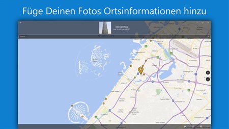 • Schau Dir Deine Fotos & Videos auf der Weltkarte an* • Unterstützt JPG, HEIC, MP4, RAW & viele weitere Dateiformate • Zeige Deine Bilder und deren Aufnahmeort in einer tollen Diashow • Hinzufügen und Editieren von Geotags** • Automatische Gruppierung der Bilder • Cloud-Support (schau Dir Deine OneDrive-Bilder auf der Karte an) • Zusätzliche Bildinformationen basierend auf Exif-Tags