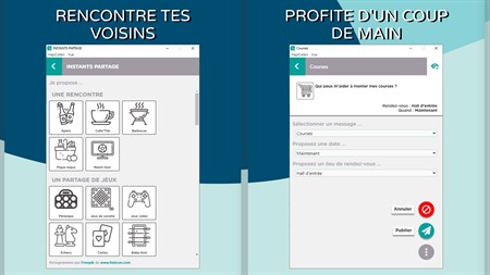 HapiColibri encourage les prêts et dons de matériel. Besoin d’un tournevis, d’une râpe à fromage ou d’un chargeur ? Tu aimerais donner des vêtements devenus trop petits pour tes enfants ? Publie ton message en quelques clics et l'application se charge de te mettre en relation.