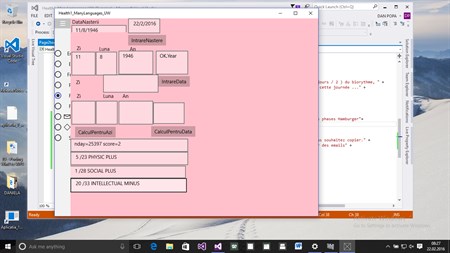 English: If you have a bad day, it is better to adapt to the situation ... :) In nature, there are several physiological cycles (day and night, ... ) that will influence the state of your physical , intellectual and social (emotional) interactions. It is good to know if you have a critical day. This program is based on the theory of biorhythms (1897-1902 Hermann Swoboda, Wilhelm Fliess ,Alfred Teltscher ) Comment: This model does not take into account the sex of the person (female, male) and must therefore be interpreted in the personal context. Must improve with coefficients Also , I think that must new research with difference between latitude and longitude when “start in life” and location where exist in moment of application. Therefore , I put section with location. Need to research also , influence of other men and women….Is much to work in social studies Life runs on code….(from a Microsoft’s gadget)
