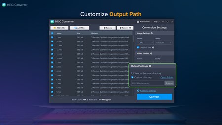 • Intuitive three-step process. • Add HEIC/HEVC files or entire folders. • Choose the output format as per your preference.