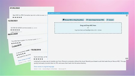 HEIC Converter is an easy, fast, and secure tool to convert your HEIC to other image formats. It supports HEIC to PNG, JPG, and JPEG image format. The app converts your images locally no need to upload your file over the internet, use our service loved by thousands of users. We are the pioneer and top-rated on windows store.