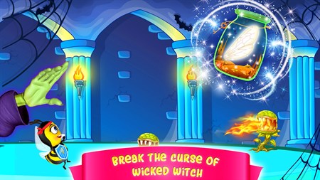 The wings are in the secret hideout, but don’t be afraid. Dodge the biting monsters and rush to the witch’s castle. She’s scary but she has blind spots. Find a way to beat her and break the evil curse and you can become the Queen Bee!