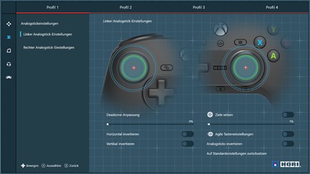 Die Einstellung kann während des Spiels geändert werden. Es ist einfach, die Empfindlichkeit des Favoriten in jedem Spiel einzustellen. Es können mehrere Profile erstellt werden. Es ist möglich, mit Ihren Lieblingseinstellungen je nach Spiel zu spielen.
